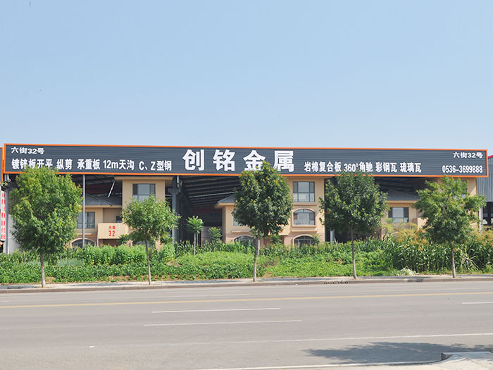濰坊創(chuàng)銘金屬制品有限公司位于山東臨朐江北物流城,地理位置好。是本地區一家集鍍鋅板卷材、鍍鋅板開平、縱剪、樓層承重板、12米天溝、C、Z型鋼、彩鋼瓦、巖棉復合板、剪板折彎等產品及板材批發(fā)、零售、加工、配送的公司。
